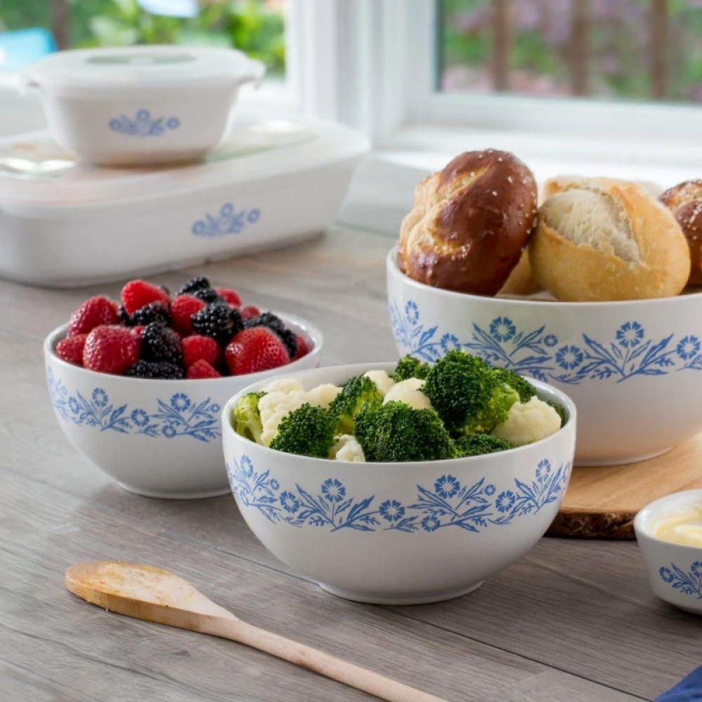 CorningWare 3-Piece Mixing Bowls (Cornflower) Features: