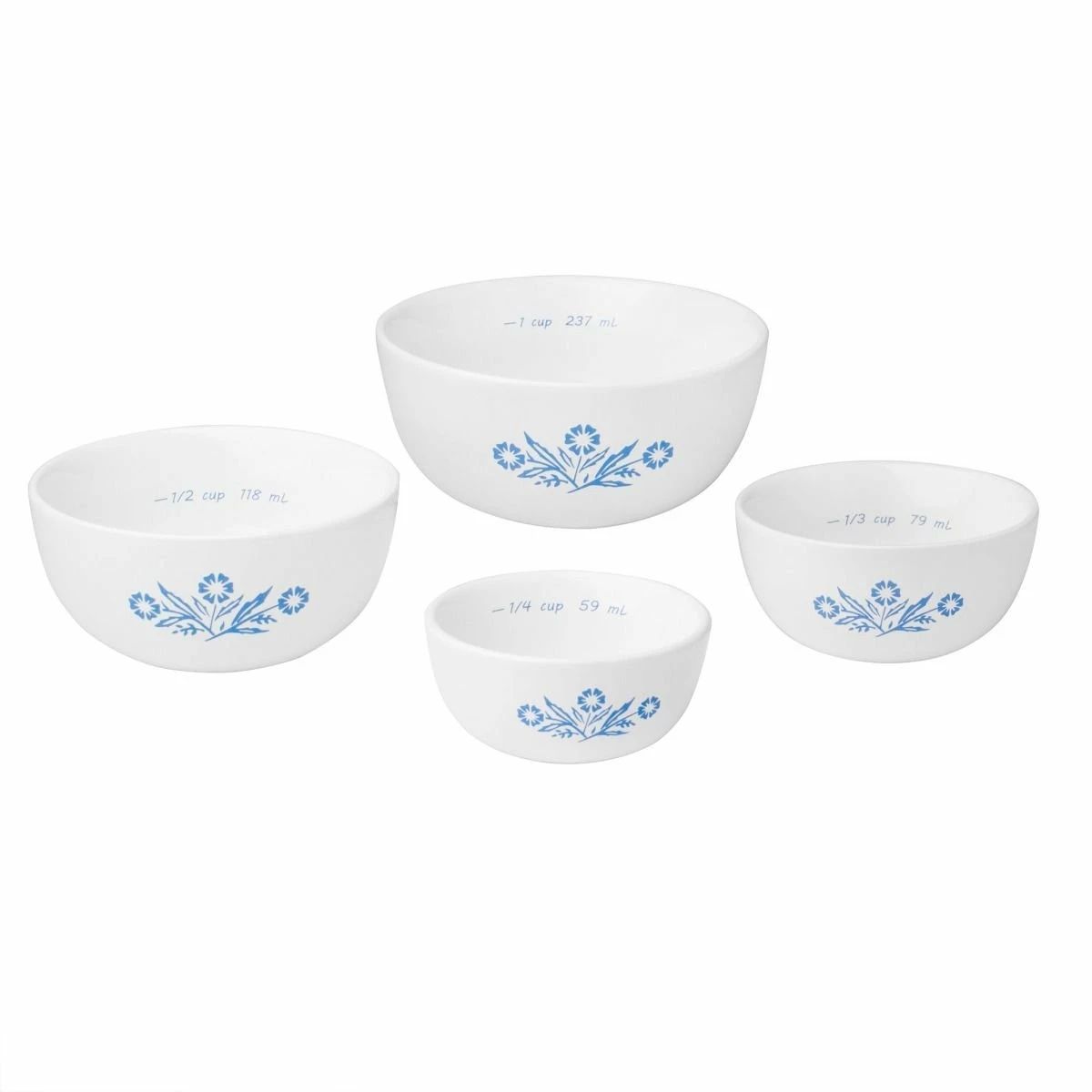 Cue the memories, then make some of your own. These stoneware measuring bowls bring back our iconic blue cornflower design along with mid-century style and original oven-to-table convenience. Four sizes, all marked inside to indicate capacity and make measuring easy.