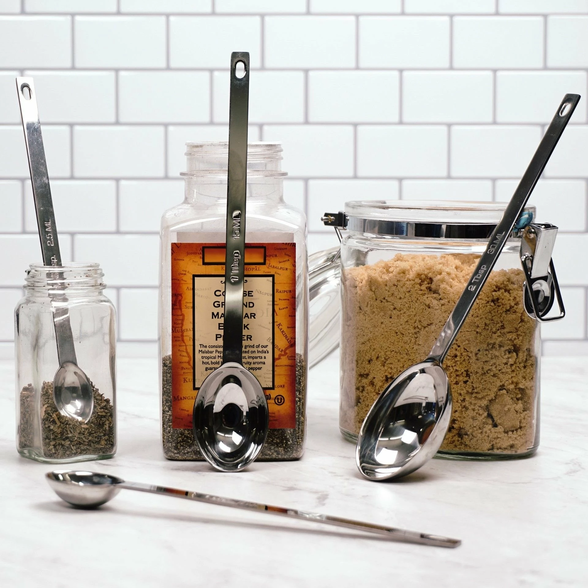 - Long 6.25” handles make it easy to reach into narrow spice jars and canisters